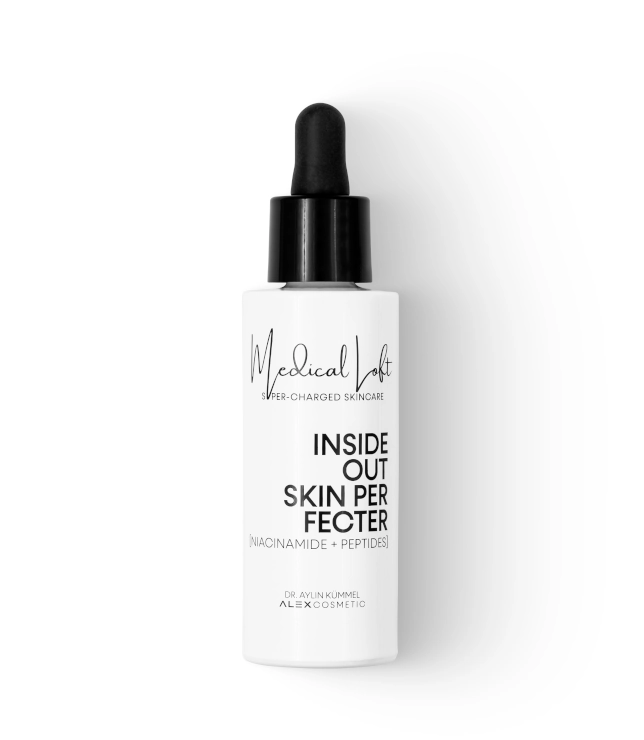INSIDE OUT SKIN PERFECTER to zaawansowane serum, które działa zarówno na powierzchni skóry, jak i w jej głębszych warstwach, wspierając procesy regeneracyjne od wewnątrz. Zawiera wysokie stężenie witaminy PP (niacynamid 5%), która wzmacnia barierę skórną, reguluje wydzielanie sebum i poprawia strukturę skóry. Peptyd inspirowany działaniem toksyny żmii rozluźnia mięśnie mimiczne, wygładzając zmarszczki, natomiast adenozyna i ekstrakty roślinne wspierają produkcję kolagenu i elastyny, neutralizują wolne rodniki i rozświetlają skórę. Efekt to gładka, jędrna i promienna cera – jak po odpoczynku.