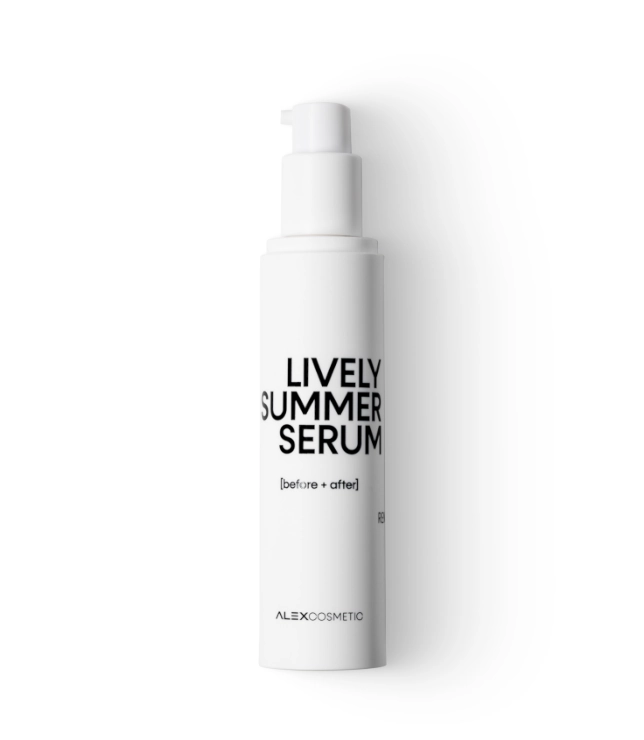 Alex Cosmetic Lively Summer Serum to lekkie, odświeżające serum, które przywraca skórze komfort, nawilżenie i naturalny blask – szczególnie w cieplejszych miesiącach. Formuła została stworzona tak, aby szybko reagować na potrzeby skóry narażonej na słońce, wysokie temperatury i klimatyzację, zapewniając jej natychmiastowe uczucie świeżości i ukojenia.