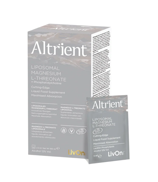 To suplement nowej generacji, opracowany z myślą o osobach, które oczekują realnego wsparcia koncentracji, pamięci i pracy mózgu. Altrient LivOn Labs MLT Liposomalny L-Treonian Magnezu Magtein® wyróżnia się wyjątkową biodostępnością i precyzyjnym działaniem, potwierdzonym badaniami nad formą Magtein®.