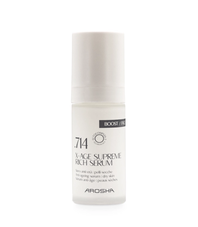 Arosha .714 X-AGE SUPREME RICH SERUM to zaawansowane serum przeciwstarzeniowe opracowane w technologii EctoComplex-3, łączącej działanie regenerujące, antyoksydacyjne i ujędrniające. Bogata, kremowa konsystencja została stworzona specjalnie z myślą o skórze suchej, dojrzałej i pozbawionej blasku.
