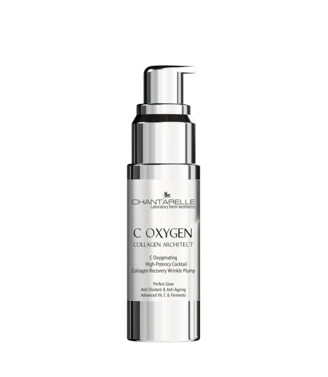 Chantarelle C Oxygen C Oxygenating High-Potency Cocktail Collagen Recovery Wrinkle Plump to skoncentrowane serum – booster kolagenu, który przywraca skórze sprężystość, gładkość i zdrowy blask. Cera zyskuje wyraźnie lepsze napięcie, a drobne zmarszczki zostają optycznie wypełnione. Efekt to młodszy, świeży wygląd i natychmiastowe rozświetlenie.