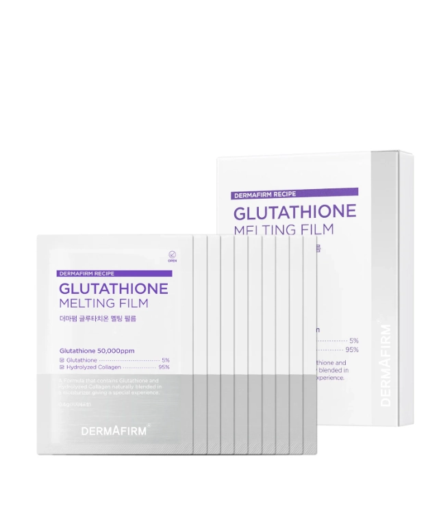 Dermafirm Glutathione Melting Film to innowacyjna forma pielęgnacji, która dostarcza skoncentrowane składniki aktywne bezpośrednio w miejsca wymagające intensywnego rozjaśnienia i regeneracji. Film stopniowo rozpuszcza się na skórze, zapewniając jej nawilżenie, jędrność i widocznie zdrowszy wygląd.