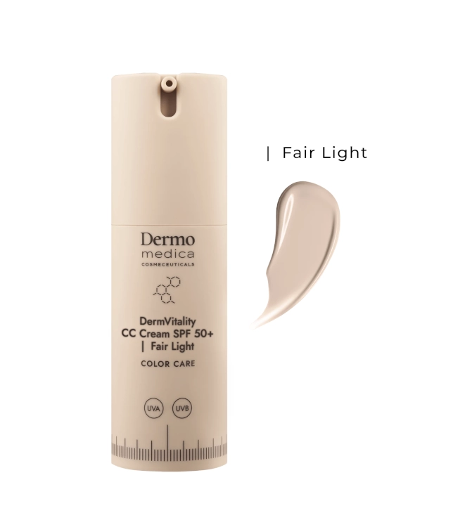 Dermomedica DermVitality CC Cream SPF 50 to nowoczesny krem koloryzujący, który łączy w sobie bardzo wysoką ochronę przeciwsłoneczną, pielęgnację anti-aging i efekt naturalnego makijażu. Stworzony z myślą o codziennej ochronie, zapewnia skórze zdrowy wygląd, nawilżenie i długotrwały komfort.