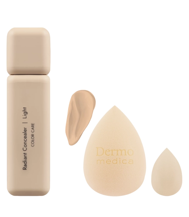 Ten zestaw to idealne połączenie pielęgnacji i perfekcyjnego makijażu – luksusowy korektor Dermomedica Radiant Concealer Light oraz dwie profesjonalne gąbeczki DermoBlend Set w różnych kształtach, które zapewniają precyzyjną aplikację.