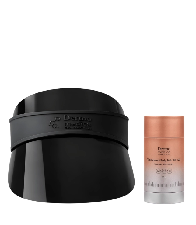 Dermomedica UV Cap Black + Transparent Body Stick SPF 50 to zestaw, który zapewnia wielowymiarową ochronę skóry przed światłem i jego negatywnym wpływem. Połączenie fizycznej bariery w postaci daszka oraz nowoczesnej formuły sztyftu SPF sprawia, że skóra jest zabezpieczona zarówno powierzchniowo, jak i pielęgnacyjnie.