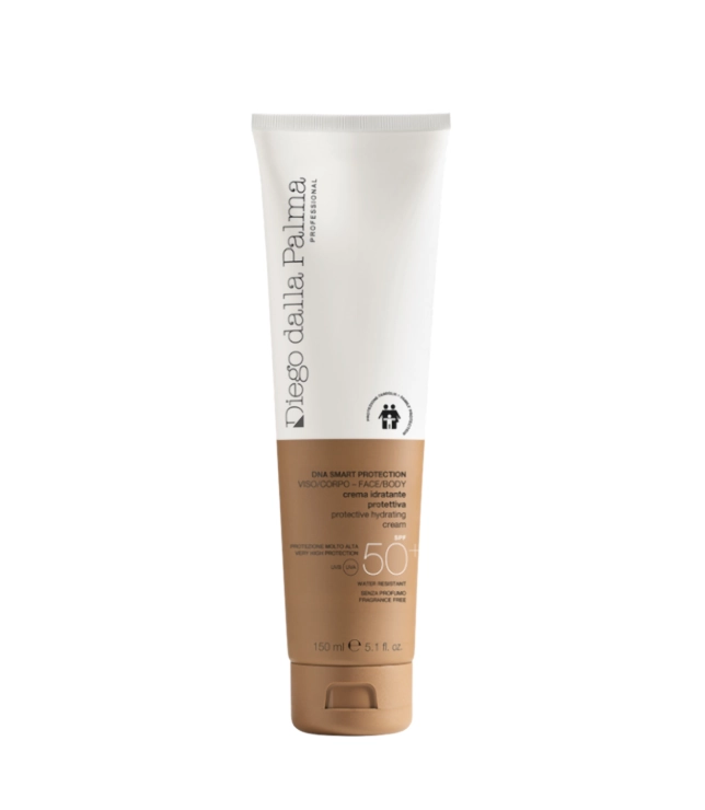 Diego Dalla Palma Protective Hydrating Cream SPF 50 to lekki krem ochronny, który zabezpiecza przed promieniowaniem UVA, UVB oraz IR, jednocześnie dbając o odpowiedni poziom nawilżenia. Formuła nie pozostawia białego osadu i szybko się wchłania, dzięki czemu skóra wygląda naturalnie i świeżo.