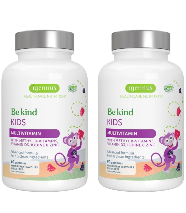 ultiwitamina dla dzieci, 90 żelkówBezcukrowa, wegańska multiwitamina w pysznych jagodowych żelkach, opracowana przez lekarzy i naukowców specjalnie dla dzieci. Zawiera 11 kluczowych składników odżywczych – w tym metylowane witaminy z grupy B, witaminy A, C, D3 z porostów, E, jod i cynk – wspierających rozwój, wzrost i odporność dziecka.