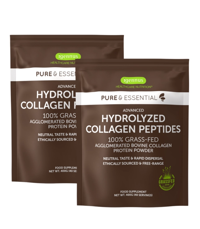 Hydrolizowane peptydy kolagenowe (400 g, 40 porcji) to czysty, łatwo przyswajalny kolagen pochodzący ze skóry krów karmionych trawą (grass-fed). Enzymatycznie hydrolizowane peptydy zapewniają wysoką biodostępność i lekkostrawność, dzięki czemu organizm szybko wykorzystuje je do odbudowy skóry, włosów, paznokci, stawów, kości oraz naczyń krwionośnych.