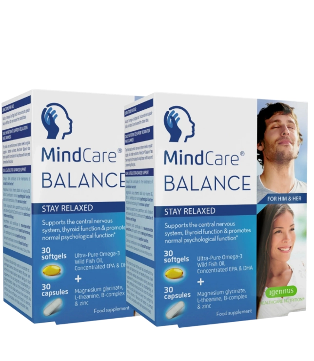 MindCare Balance to zaawansowany suplement dla osób żyjących w napięciu i stresie. Zestaw łączy 2 rodzaje kapsułek w jednej dawce dziennej: