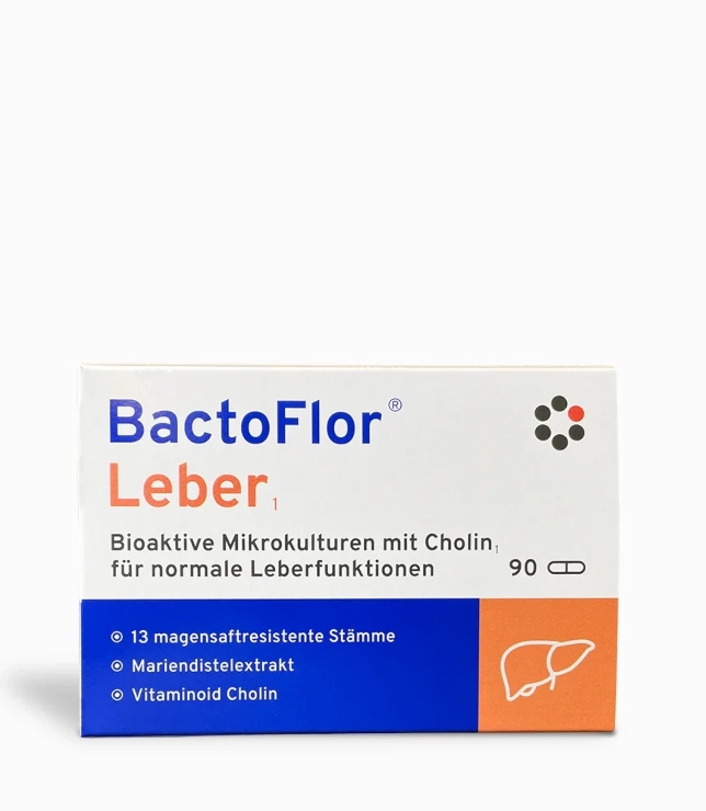 BactoFlor® Leber zawiera wyselekcjonowane szczepy bakterii oraz ekstrakt z ostropestu plamistego i cholinę.