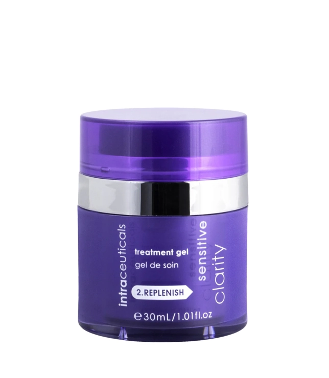 Intraceuticals Clarity Sensitive Treatment Gel to specjalistyczny żel nawilżający, stworzony dla skóry wrażliwej, tłustej i skłonnej do niedoskonałości. Dzięki lekkiej, bezolejowej formule zapewnia intensywne nawodnienie bez obciążania skóry, jednocześnie redukując wypryski, zaskórniki i zaczerwienienia. To kompleksowa pielęgnacja, która przywraca równowagę, gładkość i świeży wygląd cery.