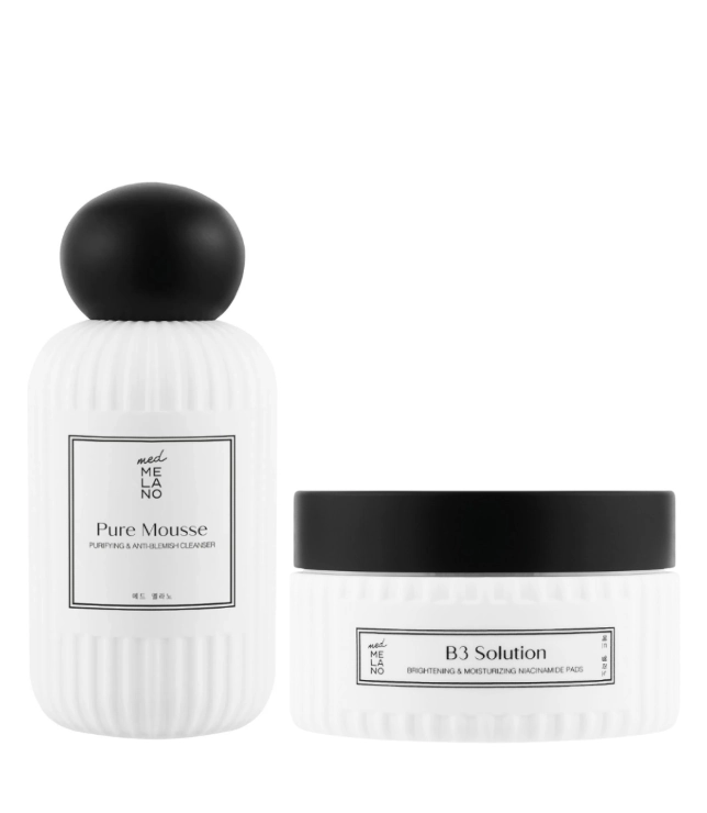 Zestaw Med Melano Pure Mousse Puryfing i B3 Solution Brightening and Moisturizing Niacinamide Pads to przemyślany duet, który przywraca skórze świeżość, jednolity koloryt i zdrowy blask. Pianka skutecznie usuwa zanieczyszczenia oraz nadmiar sebum, przygotowując cerę na kolejny etap pielęgnacji. Skóra staje się czysta, miękka i wyraźnie wygładzona.