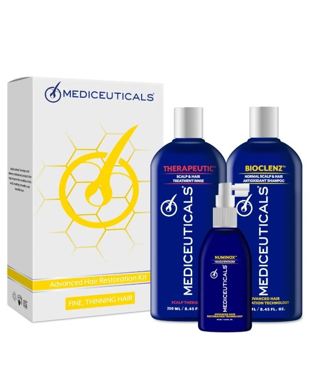 Numinox™ to intensywnie działające serum, przeznaczone dla kobiet i mężczyzn zmagających się z problemem nadmiernego wypadania włosów. Stanowi trzeci etap kuracji Mediceuticals For Hair Loss, której celem jest zahamowanie utraty włosów, stymulacja wzrostu nowych oraz poprawa ogólnej kondycji skóry głowy i mieszków włosowych.