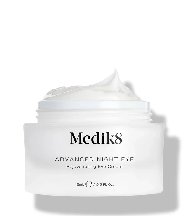 Odśwież zmęczoną skórę wokół oczu z Advanced Night Eye. Ten bogaty, szybko wchłaniający się krem nawilża skórę gdy śpisz, dla wspaniałego efektu po przebudzeniu. Wzmocniony bogactwem silnych przeciwutleniaczy, Advanced Night Eye natychmiastowo wchłania się w skórę dla głębokiego nawilżenia i wygładzenia wrażliwego obszaru wokół oczu. Kompleks Medik8 Midnight Repair zawierający moc płynącą ze smoczego owocu oraz świdośliwy olcholistnej, neutralizuje szkodliwe działanie wolnych rodników. Krem pomaga zapobiegać pojawianiu się oznak przedwczesnego starzenia się. Dzięki zawartości Matrixylu 3000, kombinacji peptydów – krem stymuluje produkcję kolagenu w celu ujędrnienia skóry. Kofeina i hesperydyna wspomagają krążenie dla zniwelowania cieni pod oczami. Delikatna skóra wokół oczu jest wyraźnie odmłodzona, zregenerowana i gładka. Krem może być stosowany w połączeniu z Retinol Eye TR, dla wzmocnienia działania przeciwstarzeniowego.