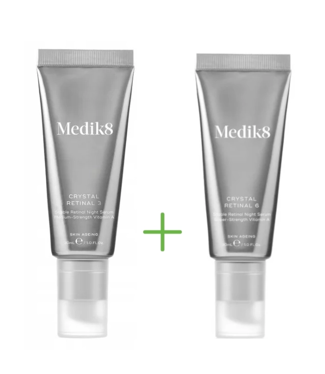 Odkryj na nowo młodzieńczą skórę dzięki najnowszej formie witaminy A w Medik8. Crystal Retinal 6™ zawiera silną pochodną witaminy A o stężeniu 0,06% która w sposób skuteczny lecz bez podrażnień przeciwdziała starzeniu się skóry. Bezkonkurencyjny w swojej skuteczności – badania kliniczne wykazują do 11 razy szybsze działanie w porównaniu do klasycznych formy retinolu. Przełomowy krem na noc w widoczny sposób minimalizuje zmarszczki. Dodatkowo kwas hialuronowy, gliceryna i witamina E, nawilżają skórę na każdym poziomie, zapewniając gładką i bardziej młodzieńczą cerę. Co więcej, Crystal Retinal 6™ wykazuje działanie antybakteryjne, zapobiegając powstawaniu niedoskonałości. Już nie musisz wybierać pomiędzy działaniem przeciwstarzeniowym, a walką z niedoskonałościami.