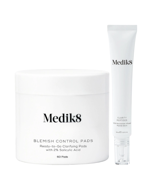 Medik8 Clarity Peptides to lekkie, mleczne serum o działaniu antybakteryjnym, oczyszczającym i wzmacniającym równomierny koloryt skóry. Zawiera 10% niacynamidu, który jest jednym z najsilniejszych składników przeciwzapalnych. Składnik ten doskonale tłumi reakcje zapalne skóry, wspomaga produkcję ceramidów oraz hamuje transfer melanosomów z melanocytu do keratynocytów, minimalizując ryzyko powstawania przebarwień. Dodatek Crytstalide aktywuje naturalne białko α-krystalinę, które odpowiada za naturalny współczynnik rozświetlenia skóry. Crystalide pomaga regulować rytm przemiany komórkowej. Wspomaga złuszczanie komórek naskórka, zapobiega ich blokowaniu co jest przyczyną powstawania zmian zapalnych. Zawartość Cynku PCA zwiększa naturalne mechanizmy obronne komórek skóry. Pomaga nawilżyć i zrównoważyć aktywność sebum, redukując w ten sposób powstawanie niedoskonałości.