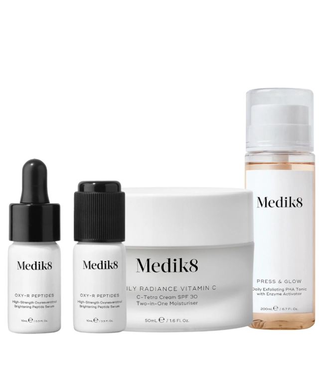Serum Medik8 redukujące hiperpigmentację. Formuła z ultra-wysokim stężeniem oksyresweratrolu, wykorzystująca nasz opatentowany system stabilizacji, dostępna tylko w Medik8.