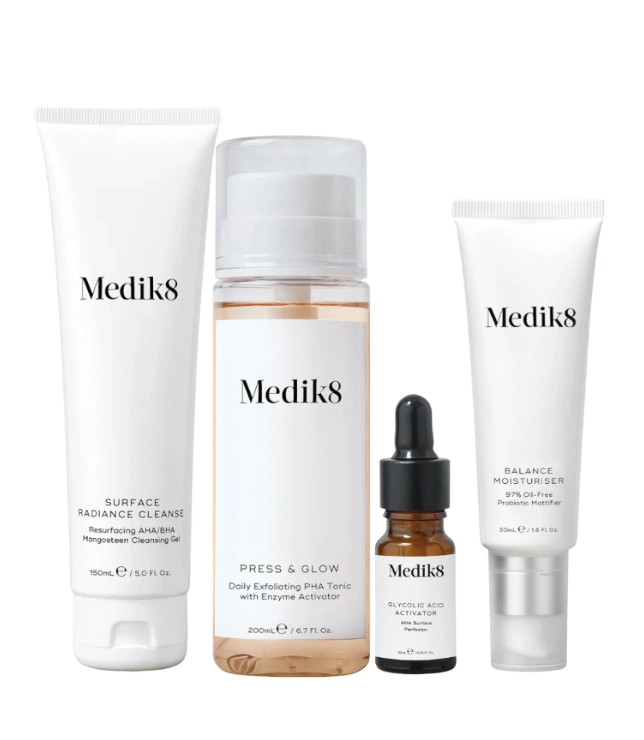 Surface Radiance Cleanse ™ – najczęściej sprzedawany kosmetyk oczyszczający Medik8. Zawiera złuszczający kompleks AHA / BHA – kwas migdałowy, mlekowy i salicylowy,