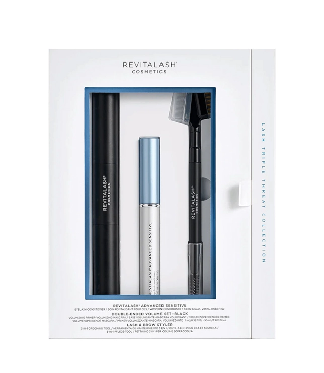 RevitaLash Triple Threat Collection Sensitive to starannie skomponowany zestaw do pielęgnacji i stylizacji rzęs, stworzony specjalnie z myślą o wrażliwych oczach i delikatnych rzęsach. Łączy skuteczną, a jednocześnie łagodną pielęgnację z efektem objętości i perfekcyjnego wykończenia, dzięki czemu rzęsy wyglądają na mocniejsze, gęstsze i wyraźnie podkreślone.