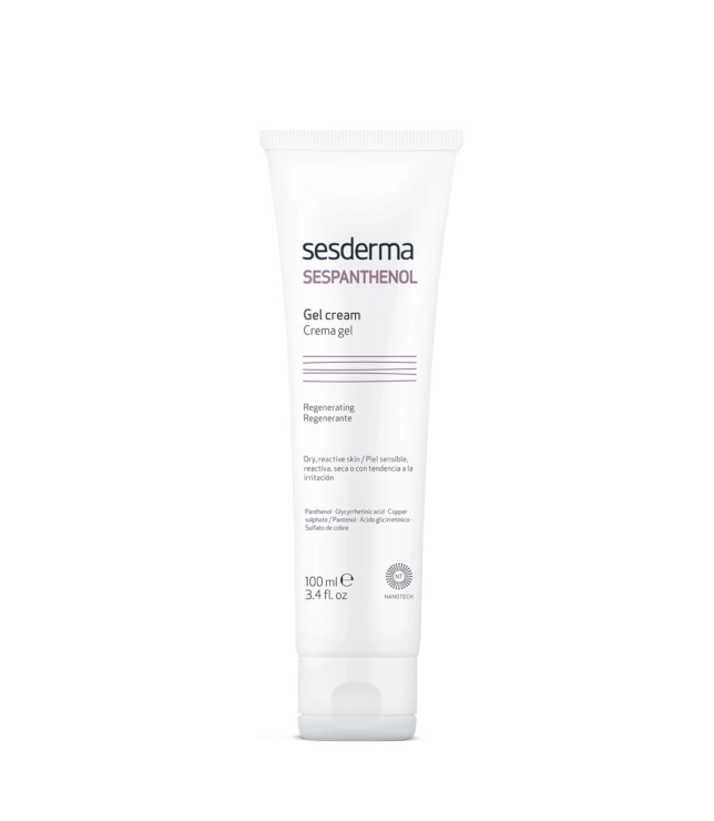 Sesderma Sespanthenol Gel Cream to liposomowy krem-żel o działaniu kojącym i regenerującym, stworzony z myślą o skórze podrażnionej, zaczerwienionej i swędzącej. Formuła skutecznie łagodzi dyskomfort, wspiera odbudowę bariery skórnej i pomaga ograniczyć potrzebę drapania. Skóra po zastosowaniu jest wyciszona, nawilżona i wyraźnie bardziej odporna.