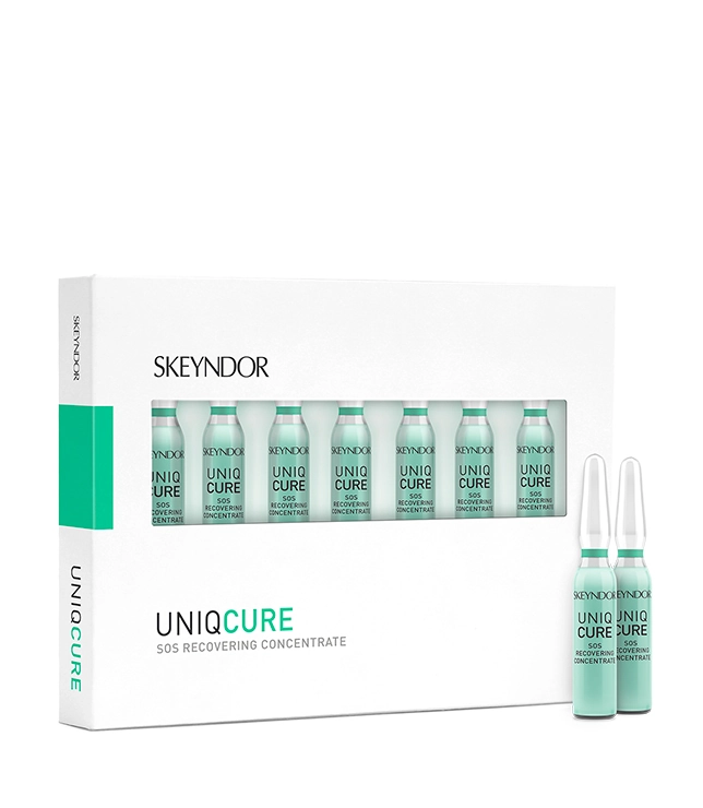 Skeyndor UNIQCURE SOS Recovering Concentrate to intensywna, ratunkowa 7-dniowa kuracja łagodząca, stworzona z myślą o skórze wrażliwej, reaktywnej i skłonnej do przewlekłych podrażnień. Preparat szybko przynosi ukojenie, zmniejsza uczucie pieczenia, zaczerwienienia i dyskomfortu, przywracając skórze równowagę oraz poczucie komfortu.
