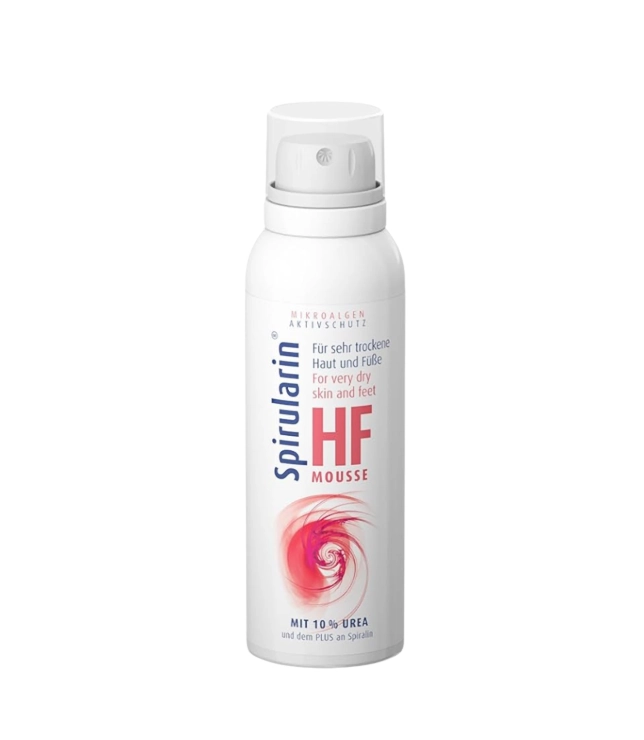 Spirularin® MOUSSE Plus to zaawansowany kosmetyk w formie pianki, który intensywnie pielęgnuje, nawilża i chroni wyjątkowo suchą i wrażliwą skórę dłoni oraz stóp. Produkt zawiera podwójną dawkę aktywnego składnika Spiralin®, który zapewnia skuteczną ochronę przed bakteriami i grzybami, co jest szczególnie istotne dla skóry skłonnej do pękania, zwłaszcza na piętach.