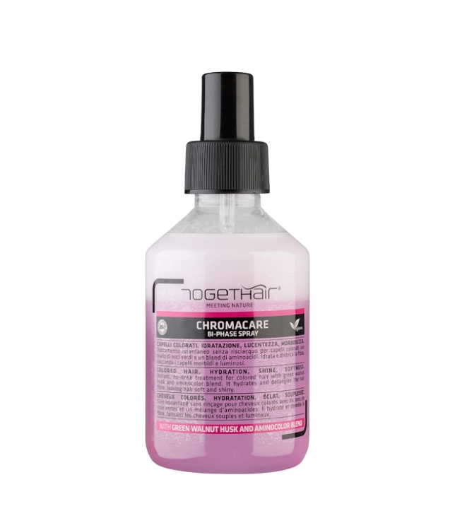 Togethair Chromacare Biphase to 2-fazowa ekspresowa odżywka bezspłukiwania, która zapewnia włosom natychmiastowe nawilżenie, wygładzenie i ochronę koloru – w dowolnym momencie dnia. Jej innowacyjna formuła 2 w 1 łączy lekką fazę wodną, która nawilża i odświeża włosy, z fazą olejową, która odżywia, wygładza i nadaje połysk bez obciążania.