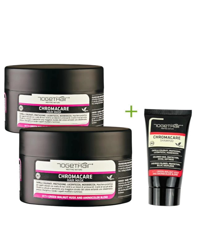 Togethair Chromacare Hair Mask to profesjonalna, intensywnie działająca maska stworzona z myślą o włosach farbowanych i po zabiegach chemicznych. Jej unikalna formuła z kwaśnym pH (3,1) zamyka łuski włosa, zatrzymuje pigment i zapobiega szybkiemu blaknięciu koloru, dzięki czemu fryzura na dłużej pozostaje pełna życia i blasku.