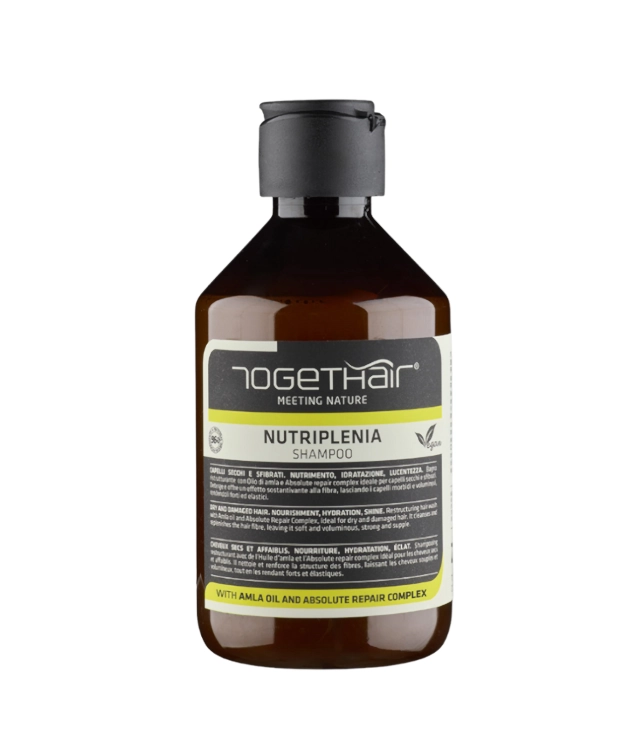 Togethair Nutriplenia Shampoo to odżywczy szampon stworzony specjalnie dla włosów suchych, zniszczonych i odwodnionych. Jego formuła delikatnie, a jednocześnie skutecznie oczyszcza skórę głowy i włosy, nie powodując ich obciążenia. Szampon intensywnie nawilża, odbudowuje włókno włosa i wspiera jego naturalną elastyczność, dzięki czemu pasma stają się miękkie, sprężyste i pełne objętości już po pierwszym użyciu.