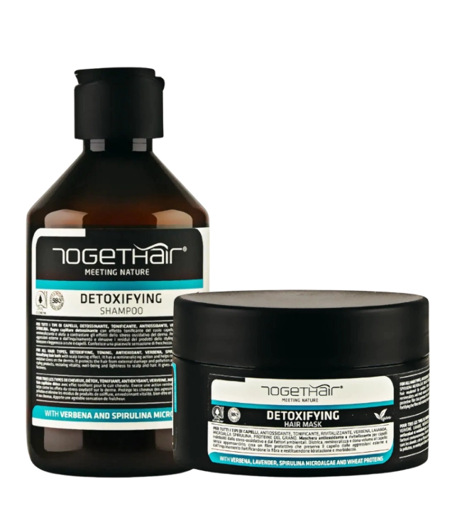 Zestaw Togethair Detoxifying to kompleksowa kuracja dla włosów narażonych na zanieczyszczenia, nadmierną stylizację i stres oksydacyjny. Połączenie oczyszczającego szamponu i rewitalizującej maski przywraca włosom naturalną lekkość, świeżość oraz energię. Zestaw doskonale sprawdza się u osób żyjących w środowisku miejskim, gdzie włosy i skóra głowy codziennie gromadzą zanieczyszczenia, kurz i pozostałości kosmetyków.