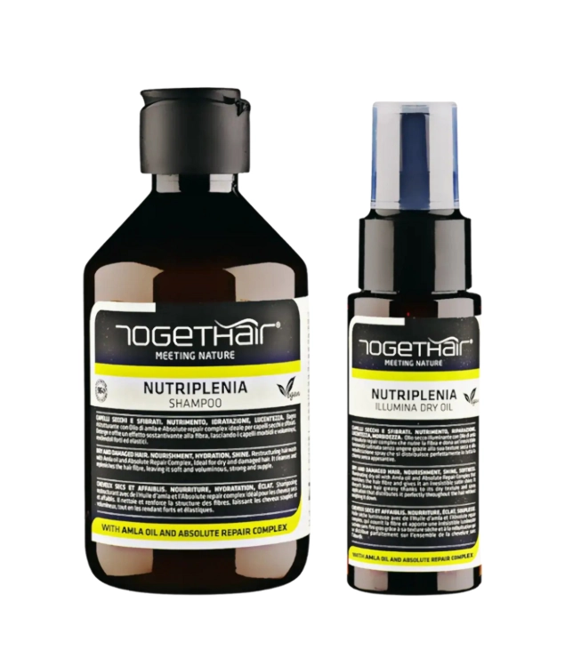 Zestaw Togethair Nutriplenia to duet, który przywraca suchym, matowym i wymagającym włosom miękkość, elastyczność i zdrowy blask. Łączy oczyszczający szampon o działaniu odżywczym z luksusowym, suchym olejkiem Illumina Dry Oil, który wygładza pasma, dodaje im świetlistości i chroni przed dalszym przesuszeniem. To idealny zestaw dla osób pragnących natychmiastowej poprawy kondycji włosów bez obciążenia i bez utraty naturalnej lekkości fryzury.