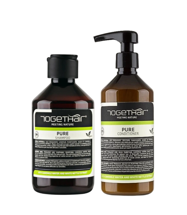 Togethair Pure to zestaw stworzony z myślą o osobach, które potrzebują wyjątkowo delikatnej, kojącej pielęgnacji. Szampon i odżywka Pure przywracają równowagę wrażliwej skórze głowy, jednocześnie pielęgnując włosy tak, aby były miękkie, gładkie i lekkie. To idealna kombinacja dla osób, które chcą ograniczyć nadmierne przetłuszczanie, złagodzić podrażnienia i zachować świeżość na dłużej.