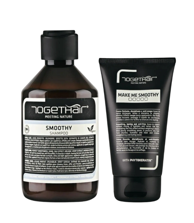 Togethair Smoothy to duet stworzony dla włosów, które trudno okiełznać. Szampon wygładzający i krem Make Me Smoothy działają synergicznie, aby ujarzmić pasma, wygładzić ich strukturę i zapewnić jedwabistą miękkość. Ten zestaw to odpowiedź na problem puszenia, szorstkości oraz braku kontroli nad włosami – bez obciążania i bez utraty naturalnej lekkości.